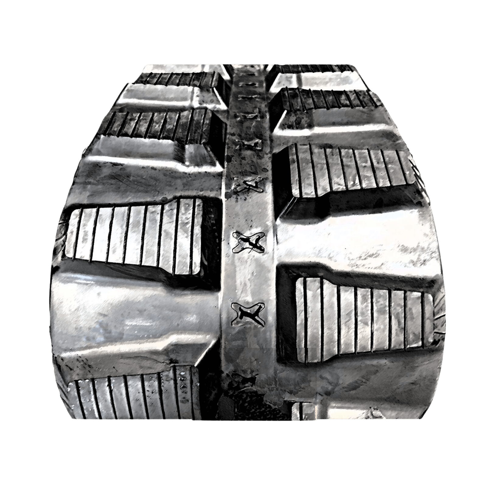 The metal cores created from forged steel (not cast), guarantee solid performance of the metal core. Special adhesive treatment is used to firmly bond the metal core to the rubber. More weight doesn’t mean a better rubber track. The weight most likely comes from very heavy-cast metal cores. The forgings we use, allow less overall weight and increase fuel economy.